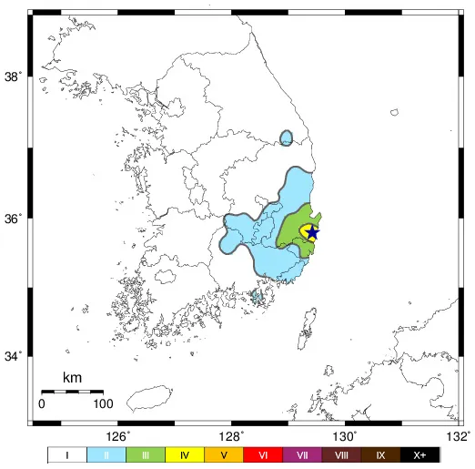 - 진앙: 경상북도 경주시 문무대왕면 입천리 산 26